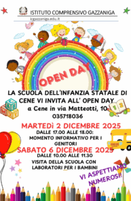 Open Day Incontro di presentazione della scuola statale dell’infanzia di Cene martedì 2 e sabato 6 dicembre